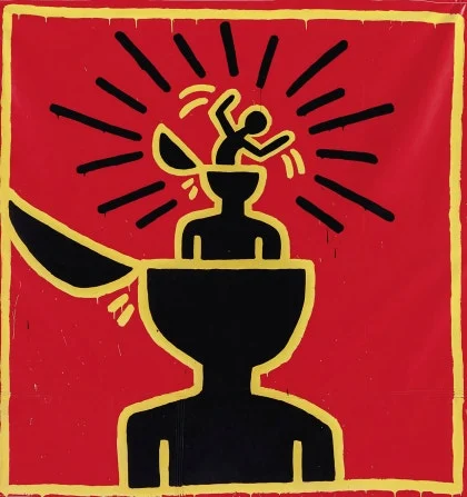 해링의 선은 빠르고 간결했지만, 결코 가볍지 않았다. 두 팔을 번쩍 들고 있는 인물, 번개처럼 튀는 개, 겹쳐진 몸, 날개를 단 유아. 그의 형상들은 시대의 감정, 젠더, 섹슈얼리티, 정치, 폭력, 사랑을 끌어안고 있었다.