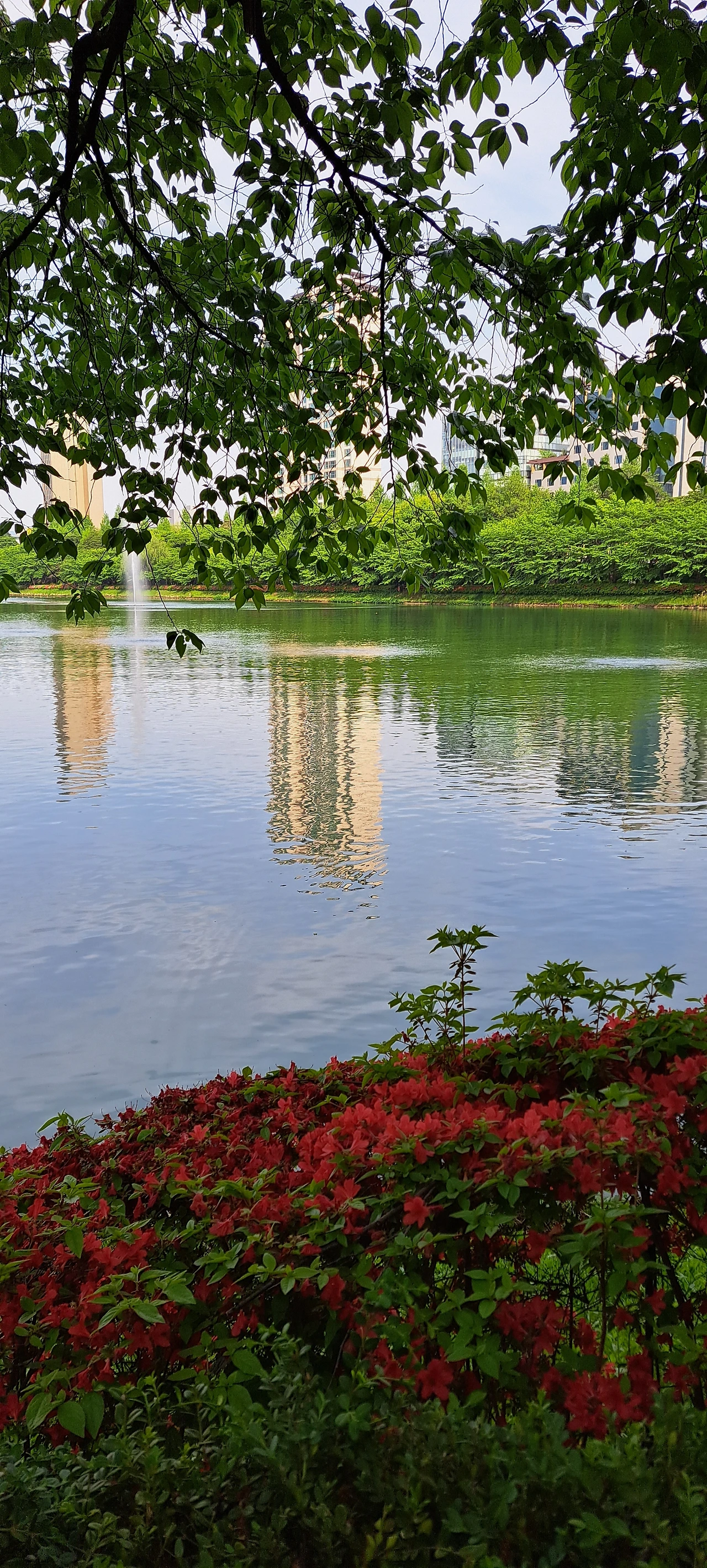 서편엔 잘 조성된 놀이동산이 있고 동편보다 먼저 호수를 조성해 아름드리나무가 제법 풍광을 드높였죠. 동편으로 도시개발이 이루어지면서 동편은 아기자기한 멋을 자아내는 호수로 탈바꿈했습니다.