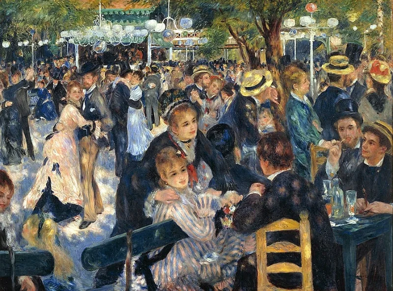 파리 근교의 작은 무도장에서 사람들이 춤추고, 대화하며 웃는 장면을 그린 이 작품은 인상주의의 대표작으로 꼽힌다.