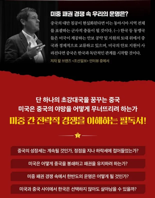 ​우리는 중국과의 경제적 관계와 미국의 안보 우산 사이에서 아슬아슬한 줄타기를 하고 있습니다. 이 책이 주는 메시지는 명확합니다.