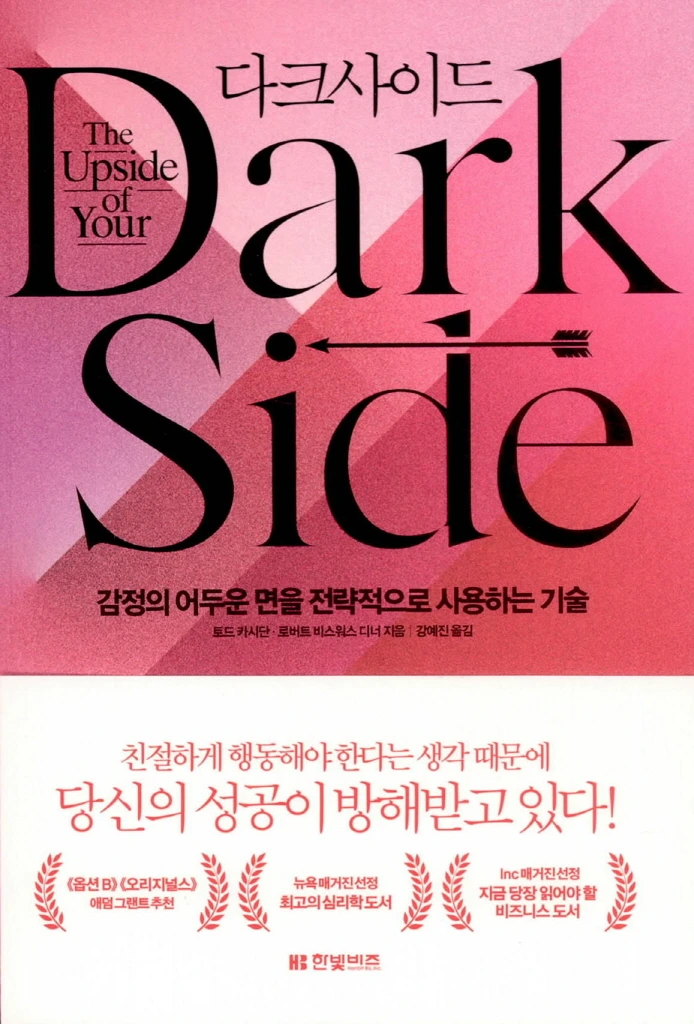 심리학자 토드 카시단은 부정적인 감정을 회피하고 억누르는 '긍정 강박'이 오히려 우리의 문제 해결 능력을 약화시킨다고 비판합니다. 그의 책 《다크사이드》는 부정적 감정을 제거할 대상이 아니라 활용할 도구로 봅니다.