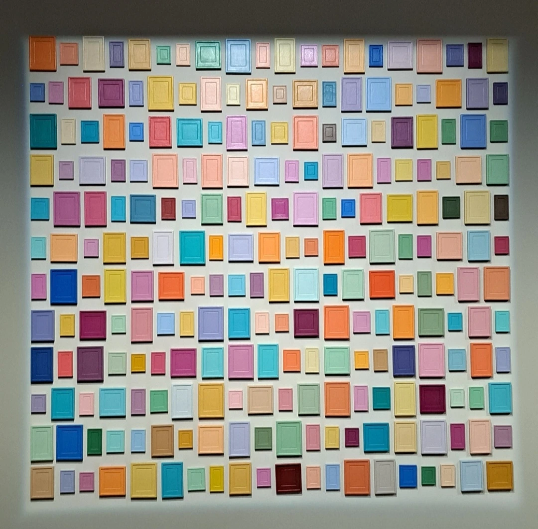 한편, 미니멀리즘의 정수를 보여주는 앨런 맥컬럼의 <240개의 대용물>은 역설적인 방식으로 우리에게 말을 겁니다. 이 작품은 무수히 반복되는 단순한 형태와 색채로 이루어져 있습니다. 복잡한 서사와 재현 대신, 오직 색채와 형태만 남은 이 그림은 현대인의 복잡다단한 사고를 잠시 '정지'시키는 힘을 발휘합니다. 단순하고 반복적인 형태는 외부의 자극으로부터 우리의 집중을 거둬들이고, 오직 색과 형태 자체에만 몰두하게 만듭니다. 이는 일종의 정신 수양이 됩니다.