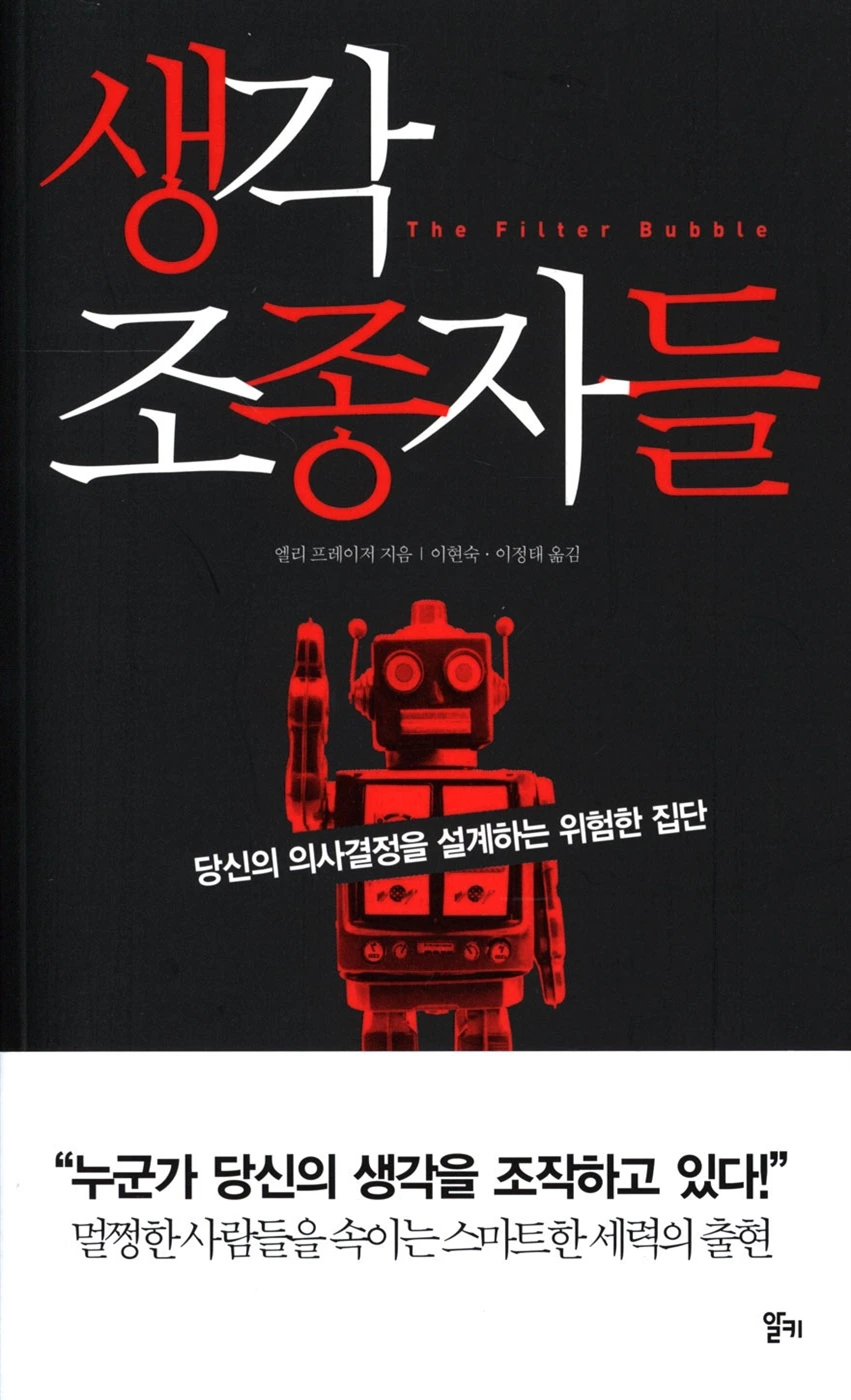 엘리 프레이저는 『생각 조종자들』에서 우리가 마주하는 인터넷 세상이 결코 객관적이지 않다고 경고합니다. 구글, 페이스북, 유튜브는 당신의 클릭 기록, 검색어, 머문 시간 등을 분석해 당신이 좋아할 만한 정보만을 골라 보여줍니다. 이것이 바로 '필터 버블(Filter Bubble)'입니다.