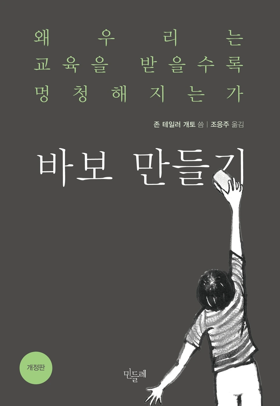 뉴욕시 '올해의 교사'상을 세 번이나 수상했던 30년 경력의 베테랑 교사 존 테일러 개토는 퇴임하며 인류를 향한 고발장을 던집니다. 그것이 바로 『바보 만들기』입니다. 그는 학교가 가르치는 진짜 과목은 국어나 수학이 아니라고 폭로합니다. 학교가 가르치는 숨겨진 교육과정(Hidden Curriculum)은 바로 '혼란, 등급, 무관심, 정서적 의존, 자아 불신'입니다.