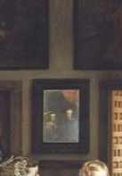 미셸 푸코는 그의 저서 <말과 사물>의 첫 장을 이 그림에 할애하며 ‘시선의 역전’을 논했다. 그림 속 인물들은 일제히 캔버스 밖, 즉 ‘우리의 자리’를 바라보고 있다. 그런데 화면 뒤쪽 작은 거울을 자세히 들여다보면, 그곳엔 국왕 펠리페 4세 부부의 모습이 비치고 있다.