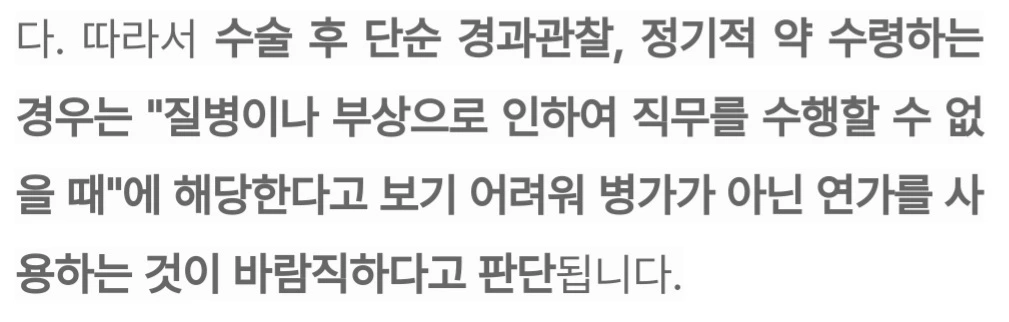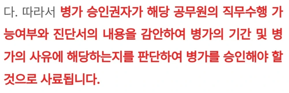 연가보상비는 연 최대 21일의 연가 중 사용하지 읺은 연가 일수를 돈으로 환산해 돌려주는 것. 예를 들어 병가로 연가를 대체하는 경우 대신한 연가 일수만큼 받는 돈이 늘어난다. 그 금액이 제법 크다. 아프지 읺은데도 병가를 쓰는 의도를 가늠할 수 있는 대목이다. 이런 식으로 병가를 쓰면 공식적으로 쉴 수 있는데다가 병가로 댜신한 연가에 해당하는 금액을 연말에 돌려받을 수 있다. 한마디로 일석이조라는 얘기. 병가가 비양심적으로 악용되는데도 불구하고 방치하고 있다니 말이 안 된다고 하는 것이다.