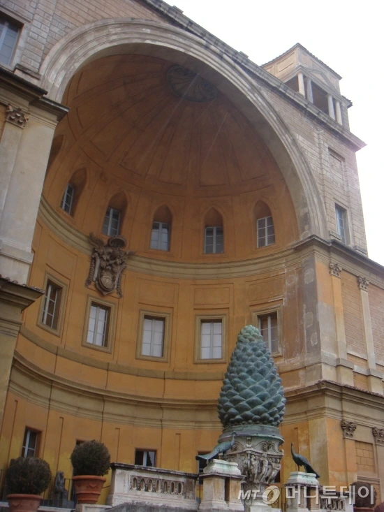 바티칸 박물관에 있는 귀여운 솔방울 분수. 새들이 많이 와서 물을 먹을 것 같이 생겼다. 회화관과 피오 클레멘티노 박물관을 이어주는 길이다. ⓒ사진=송원진