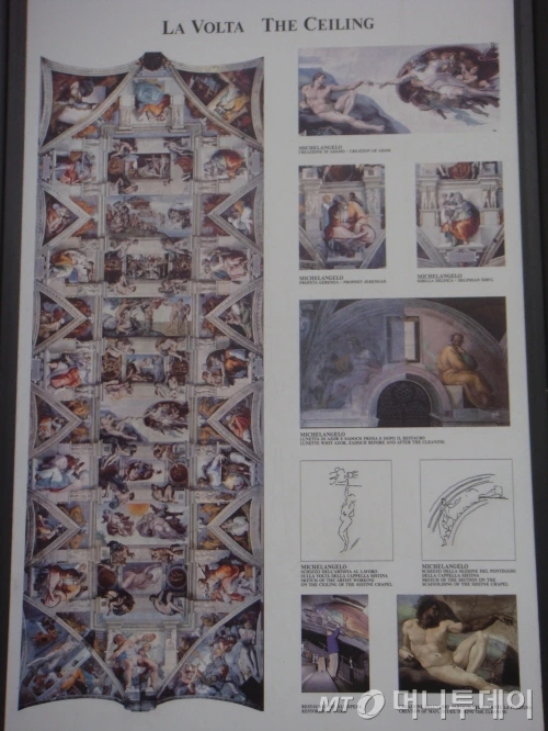 바티칸 박물관에 있는 미켈란젤로의 '천지창조' 설명 표지판. 정작 '천지창조'가 있는 시스티나 성당에는 이런 표지판이 없다. 물론 사진도 전혀 찍지 못한다. ⓒ사진=송원진