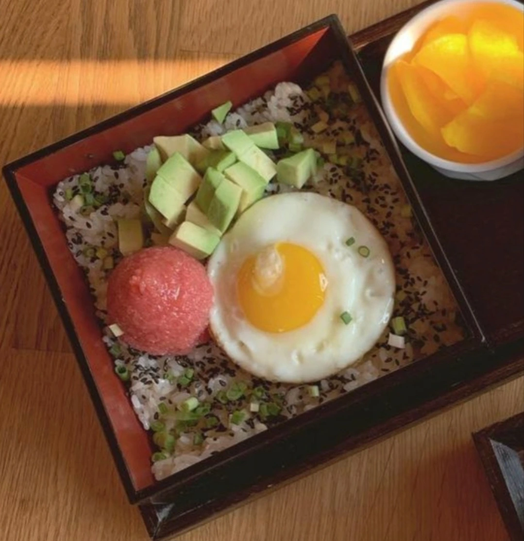 아보카도 명란밥은 주 재료인 명란과 아보카도의 조합이 훌륭했다. 명란의 톡 쏘는 짠맛을 아보카도가 손쉽게 중화해 주며 입맛을 자극했다. 곁들여 올린 계란 프라이의 속을 터뜨려 같이 비벼 먹는 맛이 일품이다. 마른 김과 물기 거의 없는 단무지, 된장국이 전체적으로 한상 밥 느낌을 주었다.