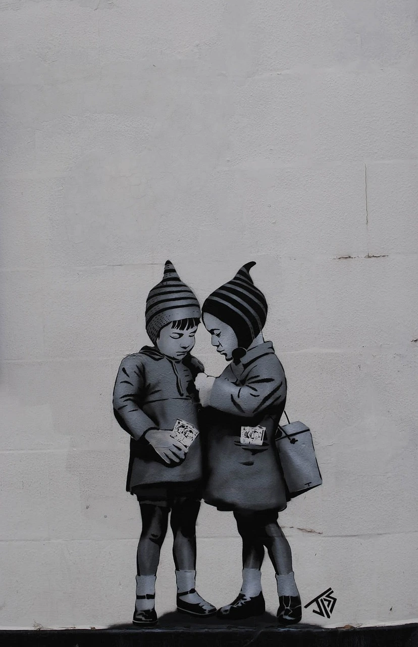후미진 골목에 그려져 사람들 눈에 잘 안 띈다고는 해도 장기간 마을 사람들이나, 필시 그들의 말을 듣고 한걸음에 달려왔을 그림 좀 본다는 사람들이 뱅크시 작품의 품격을 못 알아볼 리 없다는 의문을 떨쳐낼 수 없었다. 모작일 소지가 다분하다...... 고 결론을 내리고도 한동안 뱅크시에 붙들린 두 눈은 그림이 그려진 벽면에서 떨어지지 않았다.