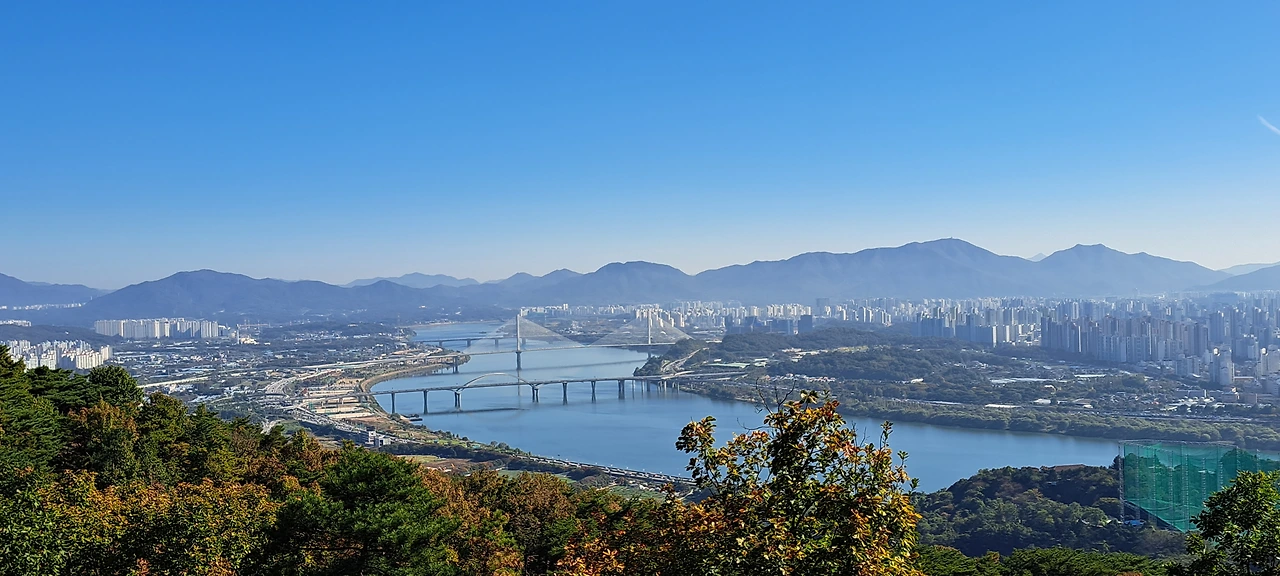 정상 좌우로 펼쳐진 풍광에 압도된 것도 잠시 시계를 보고 아차 싶었다. 시각이 12시를 향해가고 있었다. 조금만 걸은 뒤에 카페로 돌아가기로 마음 먹은 걸 송두리째 잊었다. 그만큼 <아차산>이 빼어났다는 뜻이겠다.