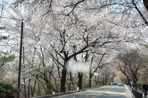 워커힐 아파트 뒷편 벚꽃길. 드라이브 코스로 유명하다.