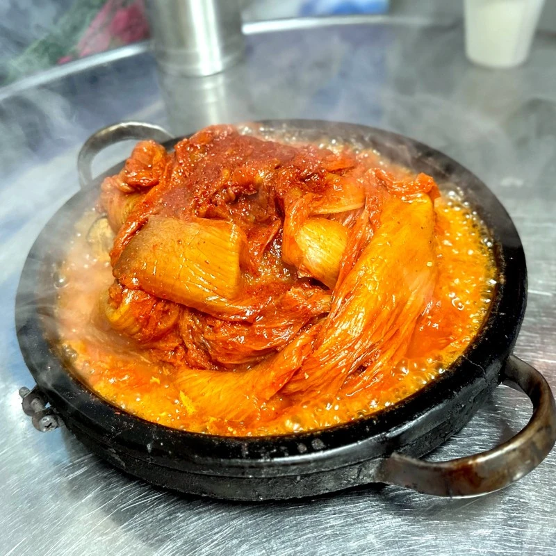<어랑추>는 노포로 손색이 없었다. 외관에서 풍기는 노포다움은 음식에서 빛을 발했다. 어랑추의 시그니처 메뉴라 할 묵은지 고등어 조림이 특히 뛰어났다. 푹 익은 묵은지 밑에 간이 잘 밴 고등어가 가득 들었다.