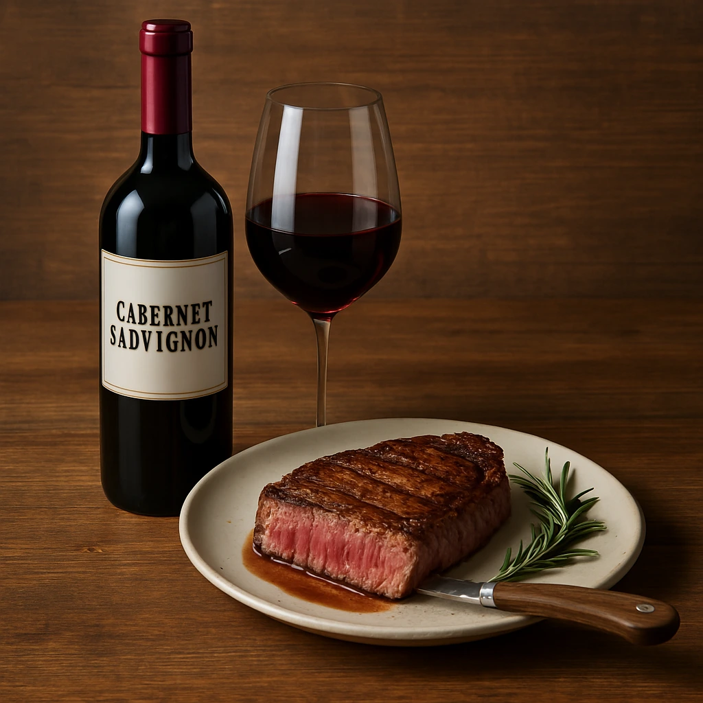 * 진한 카베르네 소비뇽과 미디엄 레어의 스테이크