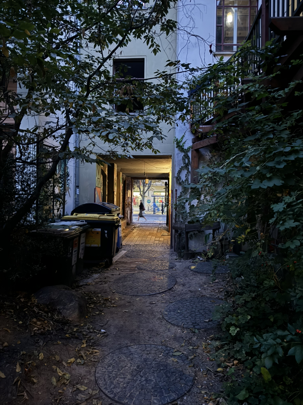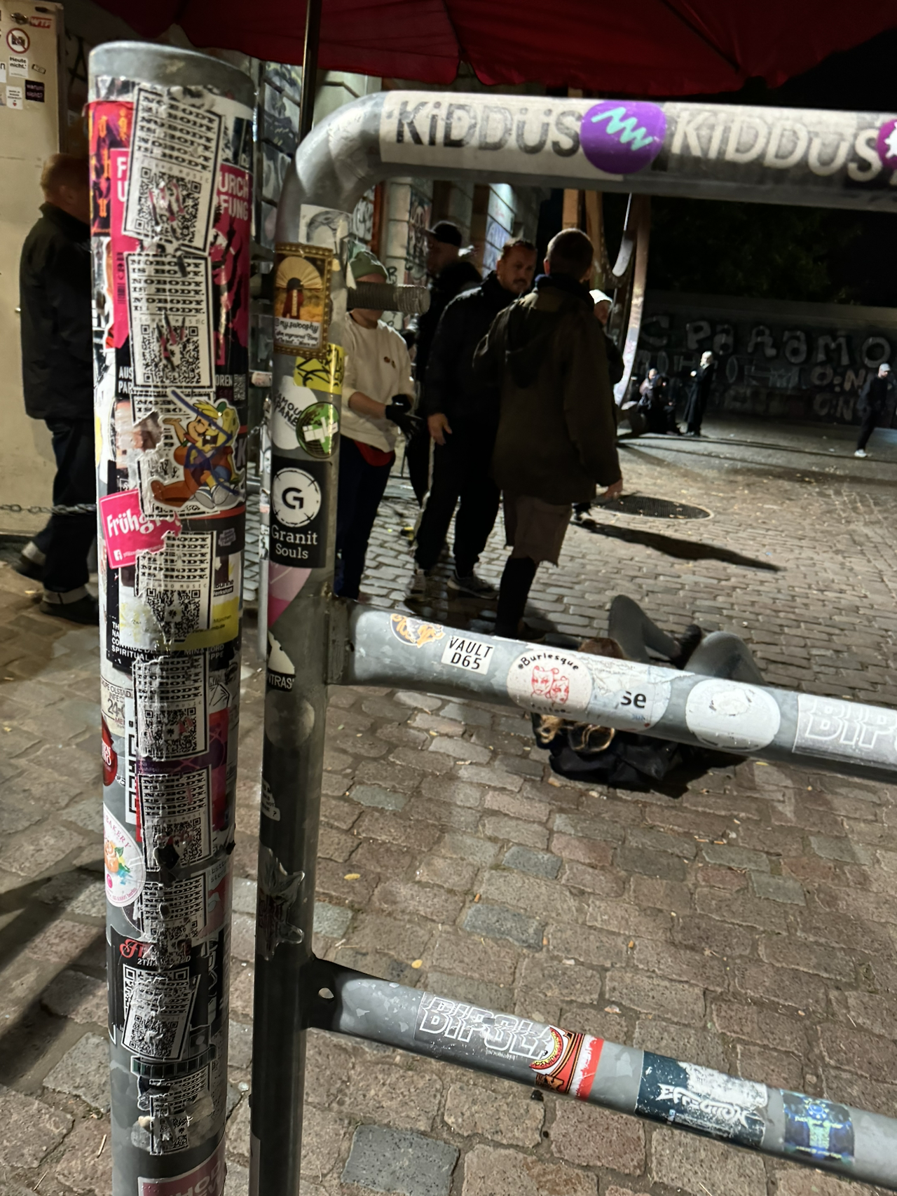나는 어쩌다가 J와 함께 그가 산다는 마우어 파크 근처의 동네를 걸었다. 며칠 전? 그러니까 베억하인에서 쫓겨나기 전 날. 정말 팬시하고 깨끗했고 레스토랑에 걸린 알전구 표면은 반짝반짝 닦여있었고 이케아 가방을 메고 카트를 미는 노숙자도 적었고 주황색 흡연 쓰레기통도 깨끗했다. 그 쓰레기통에 똥구멍 스티커는 붙어있지 않았다.