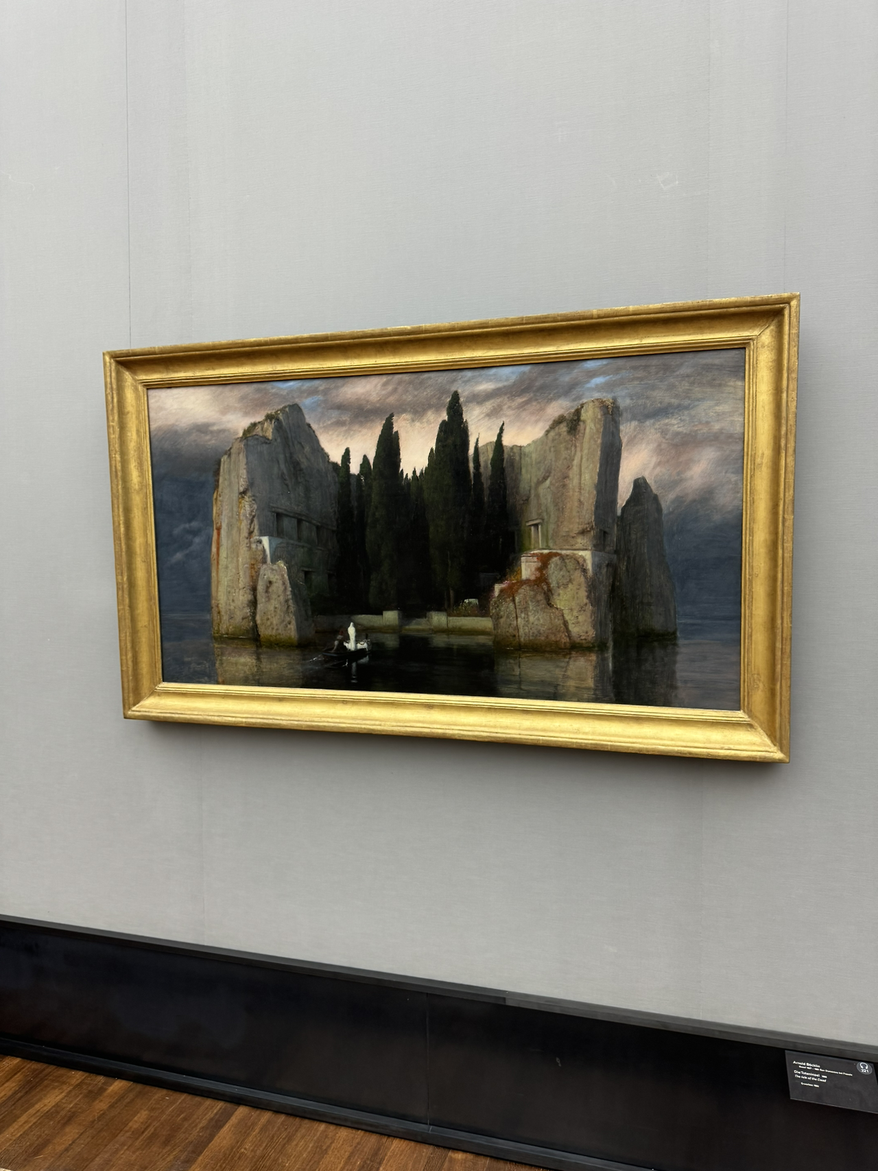 다음 날 나는 베를린 구 국립미술관에서 가서 뵈클린의 죽음의 성을 한참동안 보았다. 고흐의 그림이 있는 공간은 막혀있었다. 아르투르가 갇혔던 사방이 막힌 지하 땅굴처럼. 나는 비록 고흐의 땅굴에 갇히지는 못했지만 다른 섹션에서 죽음의 성을 보게 되었다. 익히 알려져 있듯이 그림의 정 가운데에 검은 부분. 빨려들어가는 블랙홀이 있다.
