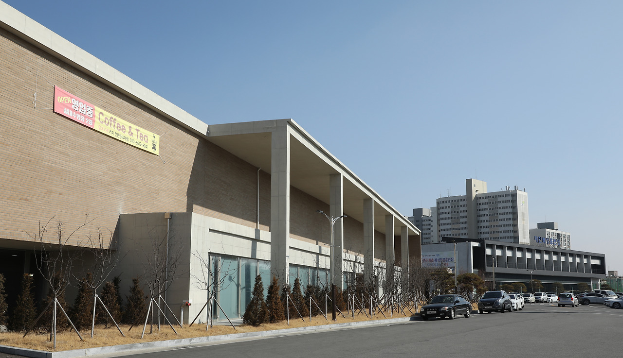 영주 실내수영장(왼쪽 미색)과 대한 복싱룬련장(오른쪽 검은색)의 외경 ⓒ포스트픽