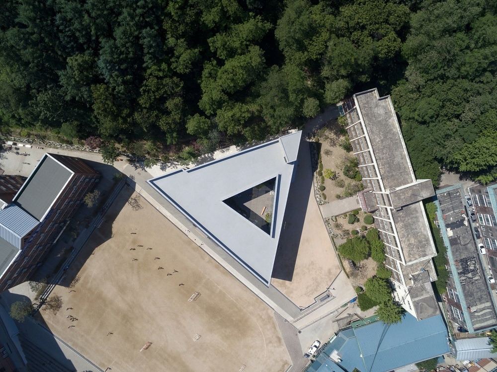 그럼 일자형 학교 건축의 틀을 깨야겠다는 생각에 일부러 삼각학교를 구상한 것일까. 그건 아니었다. 삼각형 모양으로 생긴 대지를 최대한 활용하자는 발상의 전환이 낳은 산물이었다.