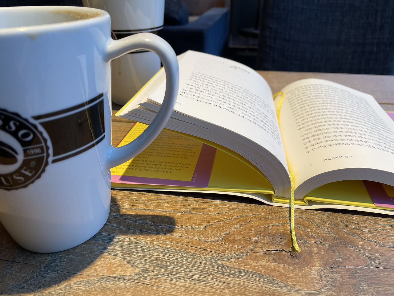 책을 반 넘게 읽으며 남은 책장의 두께가 얇아지는 것이 아쉬워지는 느낌은 확실히 생애 처음 느껴보는 경험이다. / 동네 카페에서…