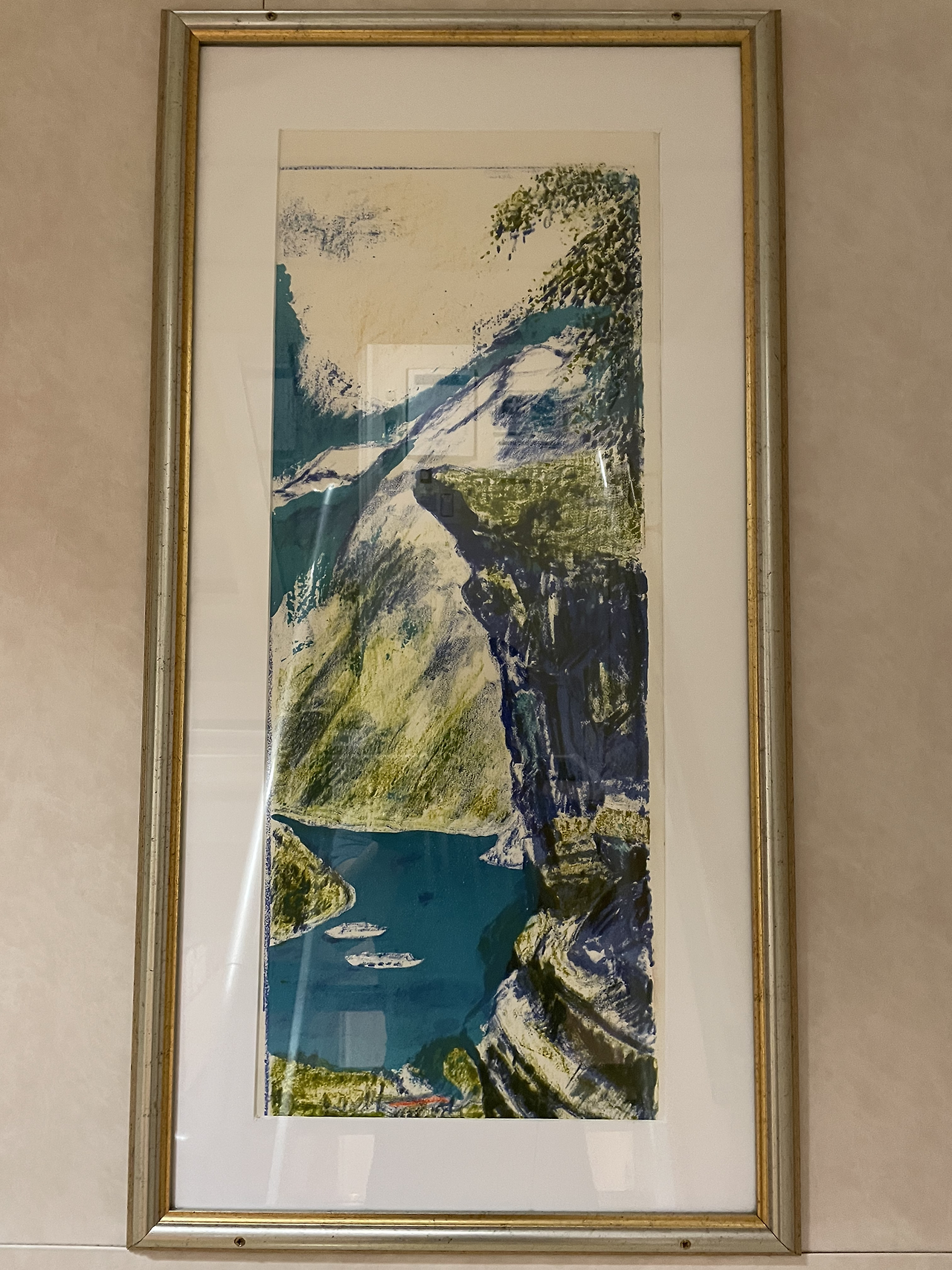 식당이 있는 A-Deck에서 사무실에 있는 B-Deck으로 오르는 계단 중간에 피오르드 그림이 액자에 걸려있다.