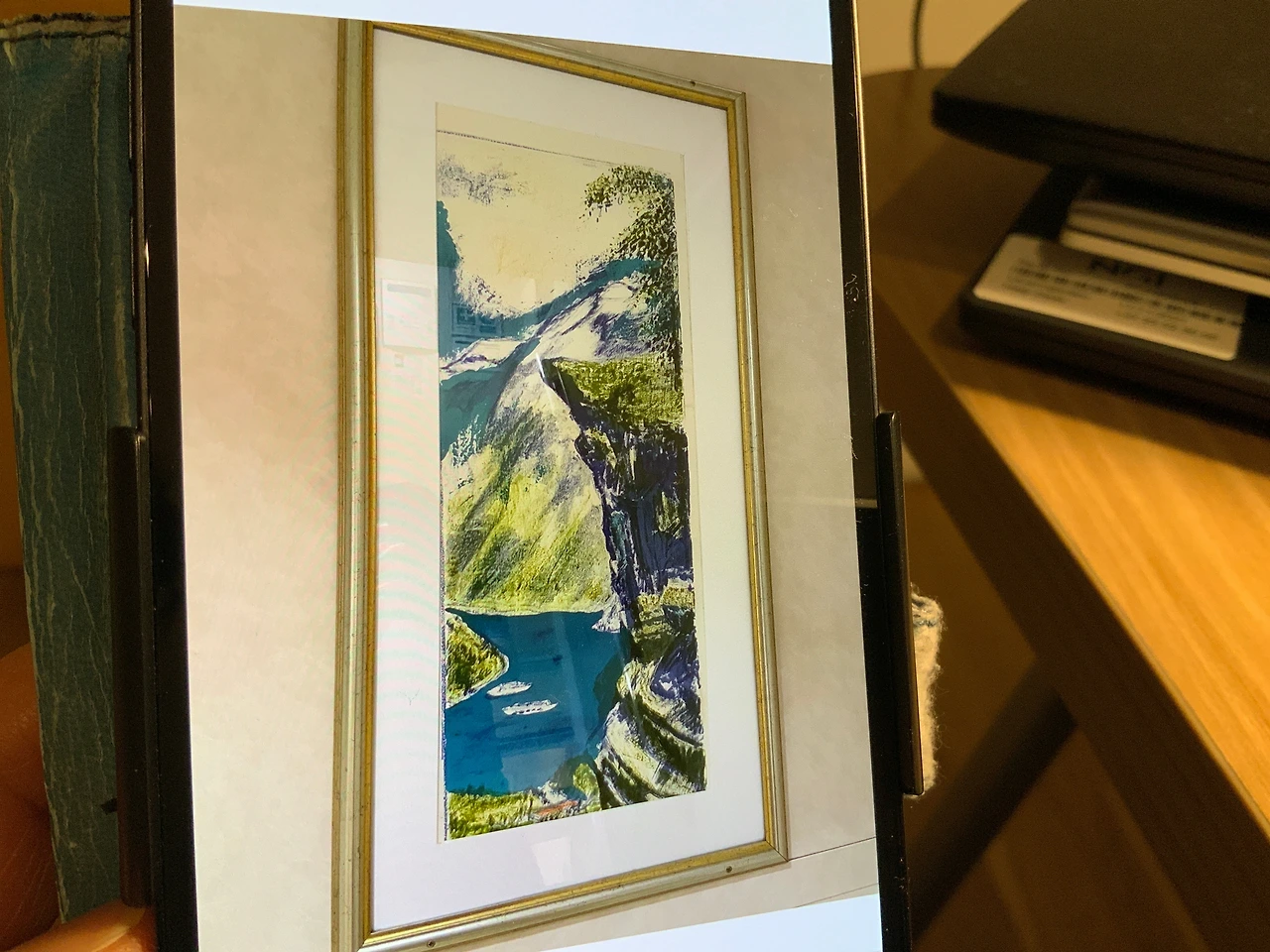 식당이 있는 A-Deck에서 B-Deck으로 오르는 계단 중간에 피오르드 그림이 액자에 걸려있다.