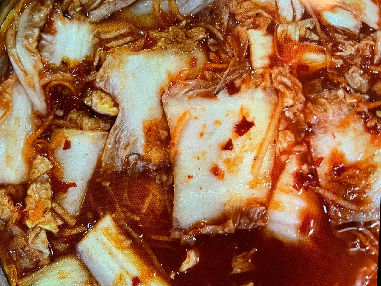 급조해서 만든 겉절이도 아니고, 샐러드바 한켵 구석진 곳에 있는 김치 모양만 흉내 낸 김치도 아니고, 떡 하니 정중앙에 김치가 자리를 잡고 있었다. 딱 봐도 고정 메뉴의 무게감을 느낄 수 있는 자태였다. 게다가 색감도 나쁘지 않았다. 한 번 맛을 봐? 하고 서 있는데, 세프가 옆으로 다가와 조심스레 물었다.