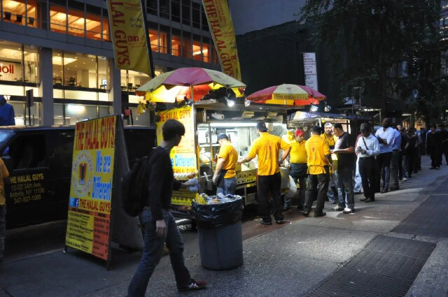 러브조각상을 지나면 힐튼호텔 맞은편 노란 푸드트럭 옆으로 길게 늘어선 줄을 언제나 볼 수 있다. 이 부자 거리의 이슬람푸드트럭의 성공은 그야 말로 신비롭다. 양도 많고 맛도 좋으니 꼭 먹어보기를. 이 이외에도 뉴욕은 푸드트럭 음식 맛이 훌륭하니 여행 경비가 모자랄 때는 언제든 이용해도 만족도가 높다.