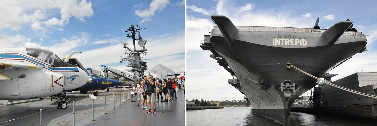 인트레피드 박물관을 들러보자. 인트레피드 박물관은 말 그대로 퇴역한 항공모함을 박물관으로 활용하는 것인데 일단 가까이만 가도 이이 떡 벌어질 정도로 크고 웅장하다. 우리나라는 항공모함이 없다고 하니 평소 이런 쪽에 관심이 있었던 사람들은 꼭 들러보기를 바다에 떠있는 어마어마한 배에 있는 어마어마한 비행기들 보는 내내 우와와 소리가 절로 나오고 예전에 이배에서 군복무를 하던 사람들이 그때 상황을 설명해 주기도 해서 더 흥미진진하게 관람할 수 있다.