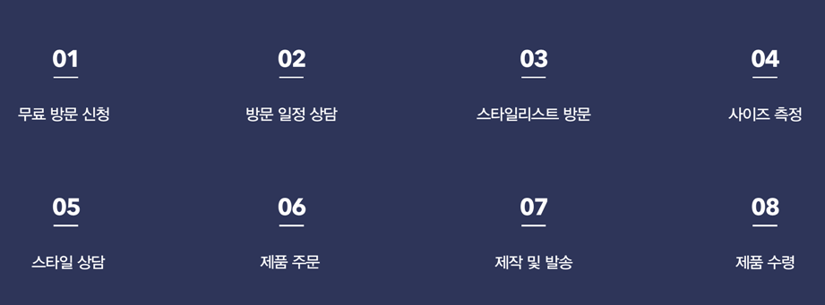 먼저 고객이 주문을 하면 스타일리스트가 고객에게 방문하여, 사이즈 측정 및 스타일 상담을 합니다.