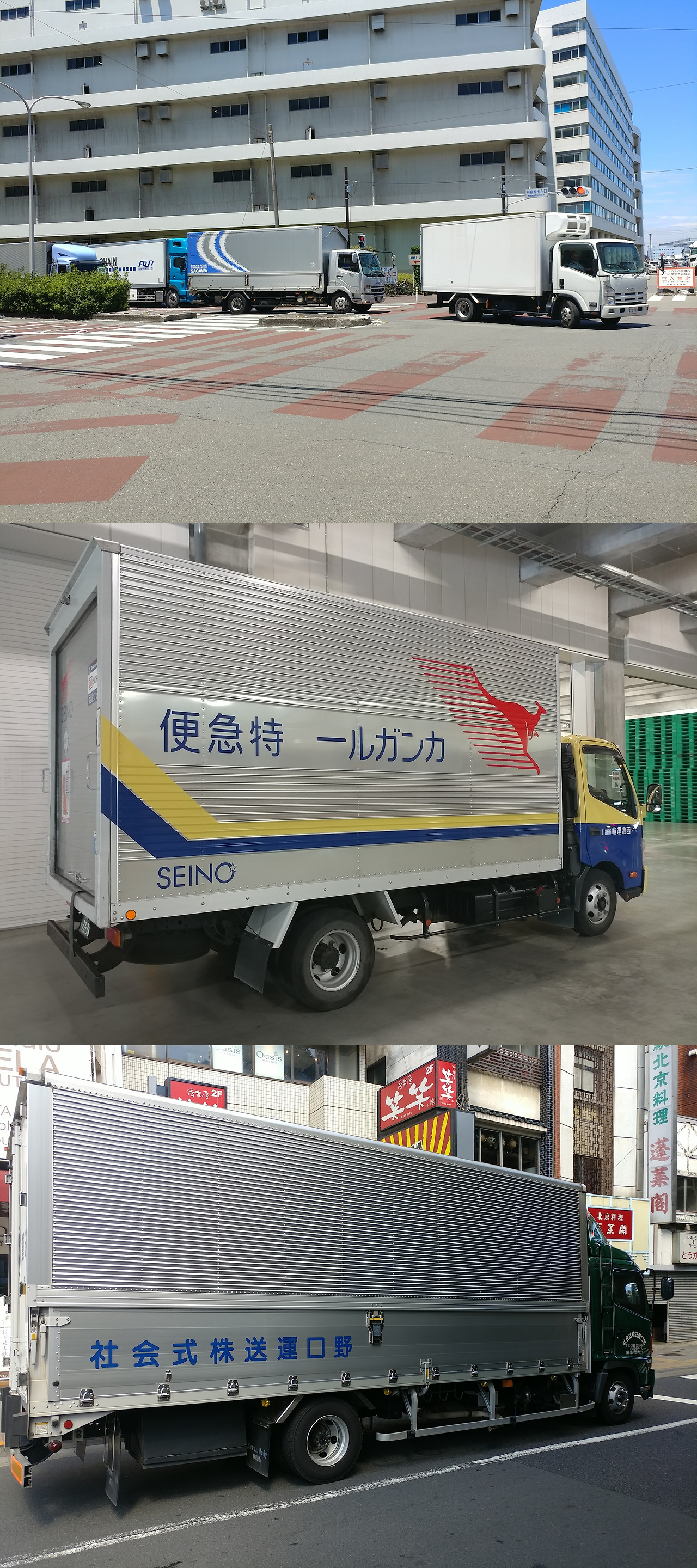 일본 물류센터와 거리에서 만난 화물차들. 물론 모든 화물차가 깨끗한 것은 아니었지만, 상대적으로 깨끗한 화물차 비율이 매우 높았다. 그것도 그냥 깨끗한 게 아니라 무서울 정도로 깨끗했다.