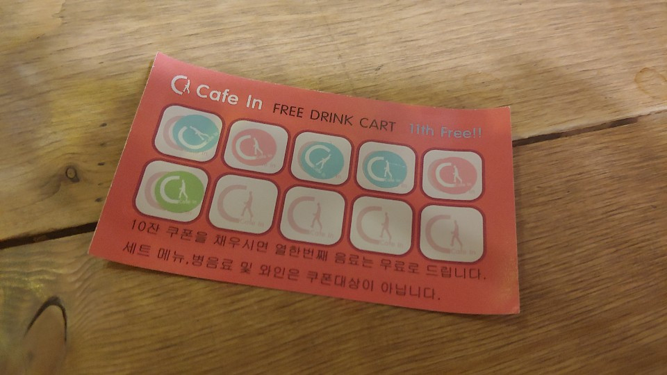 서울 도곡동 어디에 있는 또 다른 카페는 종이 쿠폰을 쓰는 곳이에요. 이곳은 스티커가 아닌 도장을 찍어주죠.