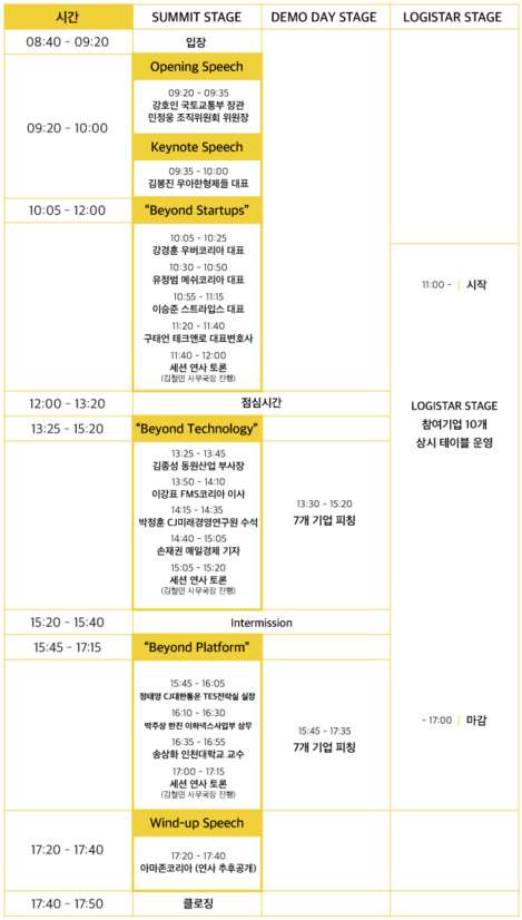 이번 행사에 참가하는 기업연사들입니다. 이 외에도 CJ미래경영연구원, 매일경제, 인천대학교 동북아물류대학원 등 학/연구계 연사들이 각각 기술이 파괴하고 연결시키는 새로운 산업 트렌드에 관한 이야기를 전할 예정입니다.
