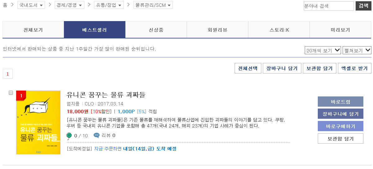 현재 단행본은 1쇄 1000부가 매진됐으며, 2쇄가 판매되고 있습니다. 오늘 확인해보니 교보문고 물류/SCM 분야 서적 베스트셀러 1위, 네이버 선정 베스트셀러에 올라 있더군요.