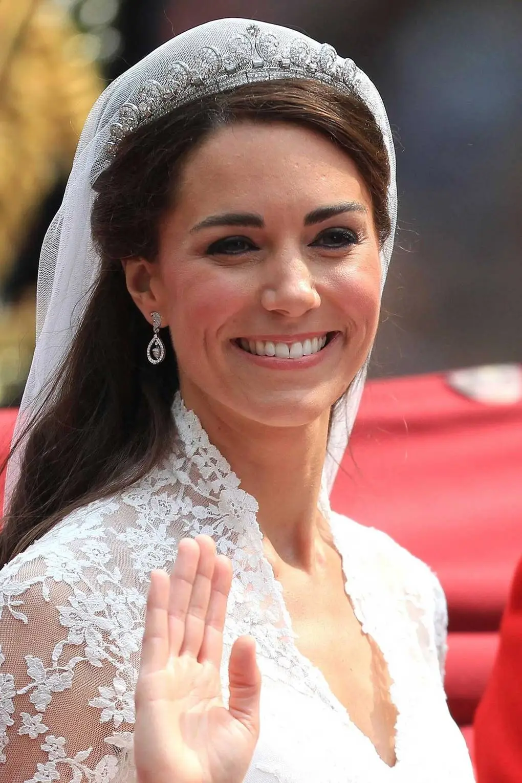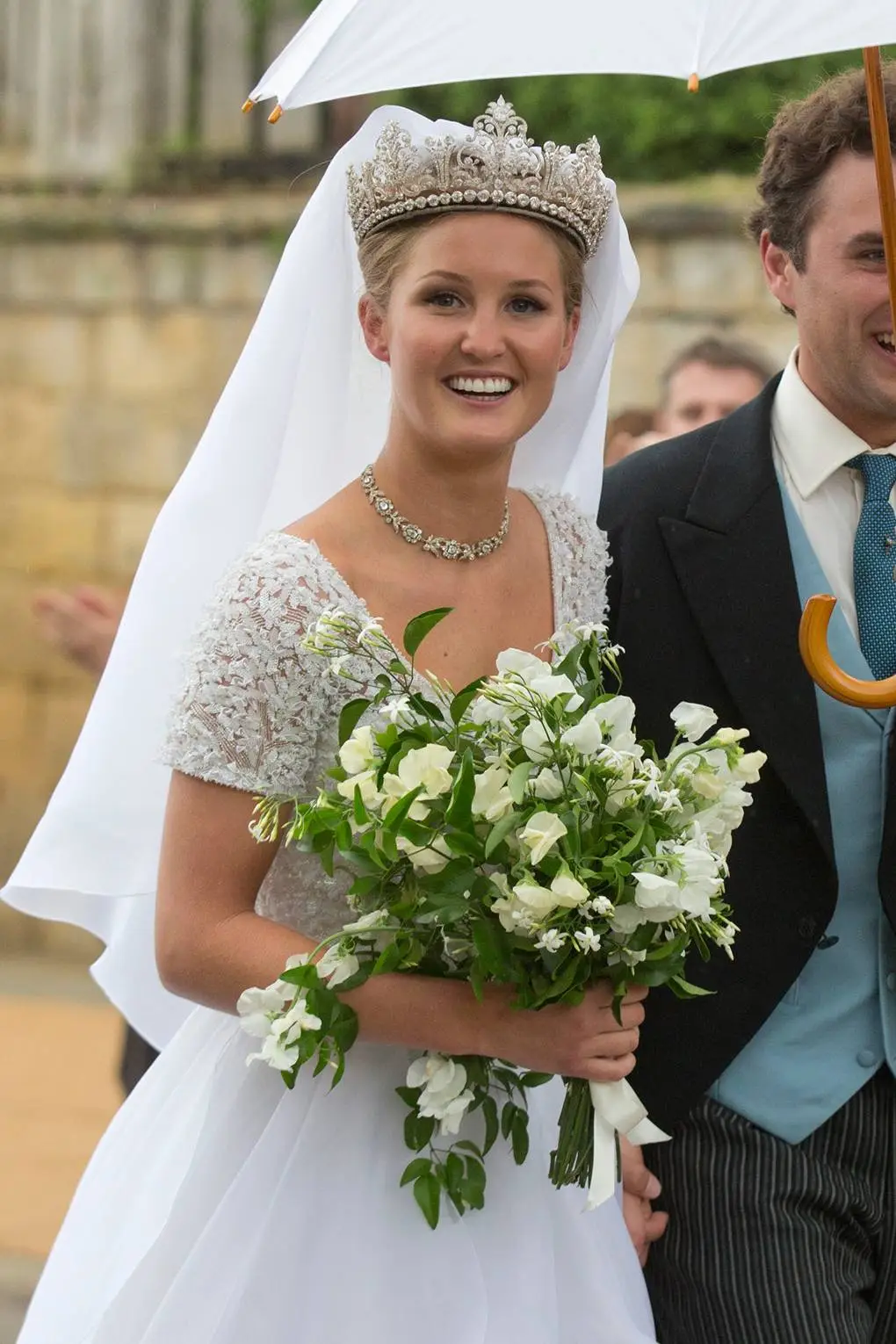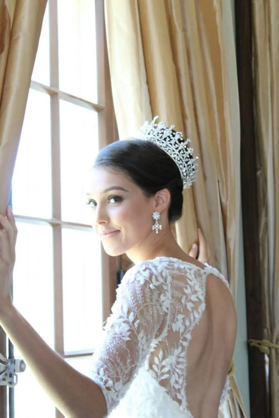 더 화려한 느낌을 원한다면 아예 원형 티아라를 골라보는 것도 괜찮다. 높게 쓰는 것이 포인트이기 때문에 보통 스튜디오 촬영 때 미니사이즈를 택하는 경우도 있지만, 해외 왕실의 로얄 웨딩에서는 오히려 그 근엄함을 드러내기 위해 높고 큰 원형 티아라를 착용하기도 한다.