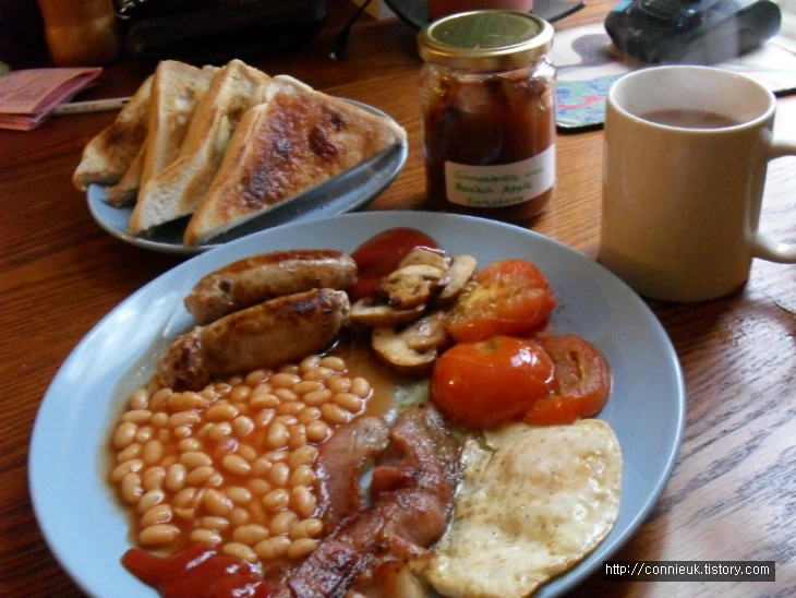 영국의 아침식사는 영국뿐만 아니라 영어권 나라에서는 인기 메뉴 중 하나로 꼽히고 있다. 솔직히 영국인들의 가정에서는 아침식사를 꼭 이렇게 하지는 않는 것 같다. 대부분이 시리얼이나 토스트를 간단하게 먹는 경향이 더 큰 것 같다. 이제는 English Breakfast가 단순한 아침 식사에서 벗어나 국제 음식 메뉴의 하나로 인식되고 있는 것~