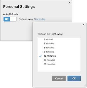 대시보드 용도로 사용이 가능한 Sights에 Auto-refresh 기능이 추가되었습니다. 1분~60분 중에서 설정을 할 수 있습니다.
