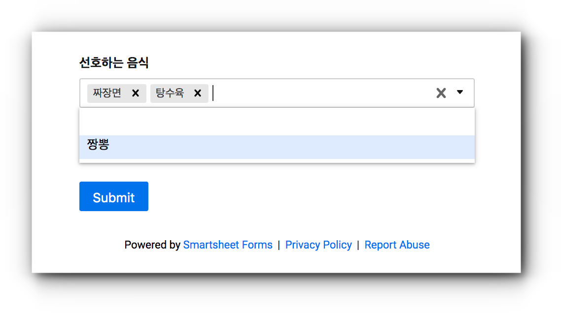 그동안 주변 다른 사용자들에게 스마트시트 양식은 Multi-Select 항목을 만들 수 없는지 문의를 종종 받았는데 이제 더 이상 그런 문의는 없을 듯하다.