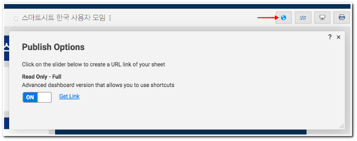 그런데 모임 신청을 위해서 예전처럼 이벤터스로 신청 페이지를 만들까 하다가 문득 스마트시트 대시보드로 만들어보면 어떨까 싶은 생각이 들었다. 스마트시트 직원들이 대시보드 기능을 웹페이지처럼 사용하는 것을 여러 번 봤어서 신청 페이지라고 못 만들 것도 없겠다 싶었다.