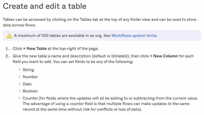 스마트시트에서 일련번호를 부여하는 기능은 자동으로 reset 되는 옵션이 없기 때문에 처음부터 고려하지 않았다. 예전에 사용했었던 Storage by Zapier도 사용하려고 보니 각 문서별로 일련번호를 만들어 사용하기에는 적합해 보이지 않았다. 어떤 방법이 있을지 고민하며 내가 활용할 수 있는 무기를 둘러보다가 작년에 도입한 Okta의 자동화 기능인 Workflows에서 간단히 데이터를 관리할 수 있는 table이라는 기능이 눈에 띄었다. 이 table을 둘러보다가 숫자를 중복 없이 생성해주는 Counter field가 있는 것을 보았다. 이걸 사용하면 되겠다!! 순간 우영우 변호사가 아이디어가 떠올랐을 때 고래가 등장하는 장면같이 Counter field를 보고서 한줄기 빛이 보이는 것 같았다.