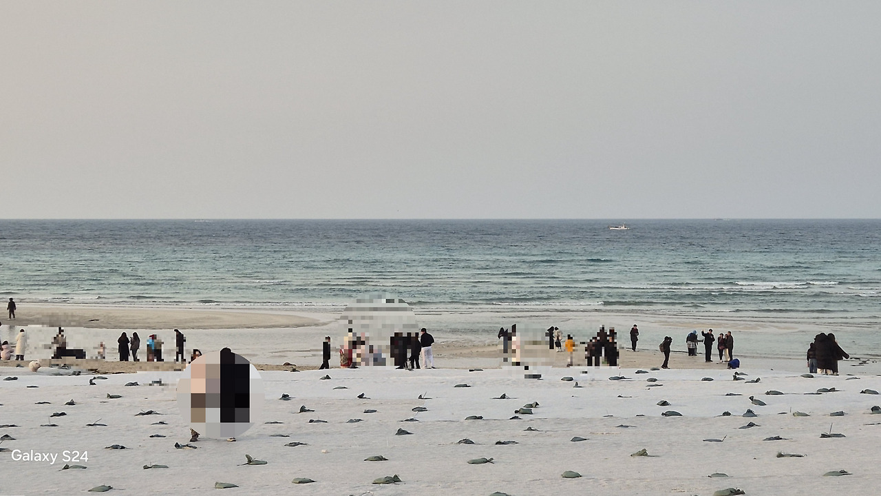미색의 모래사장은 저마다의 매력을 한껏 끌어올린 채 사진 포즈를 취하는 이들로 가득했다.