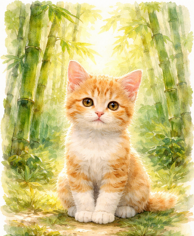 야옹이를 찾아 어두컴컴한 대나무밭으로 들어갔다.