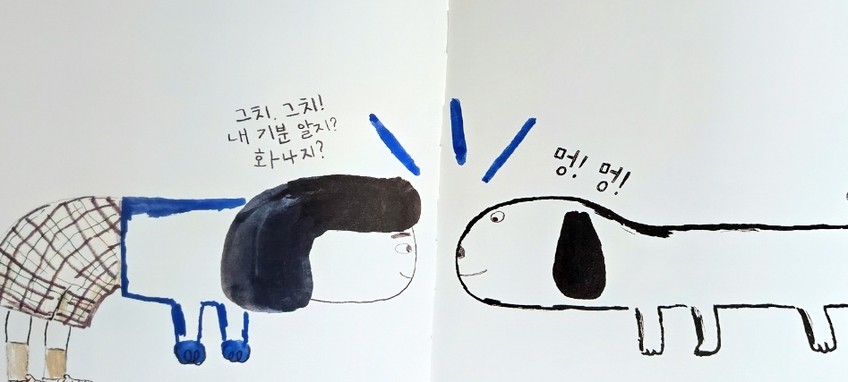 <화가 호로록 풀리는 책>은 2학년 통합교과서 '화가 잔뜩 났어요' 차시 후속수업으로 읽어준 책이다. 교과서에는 이 책의 그림과 내용이 부분적으로만 인용되어 있어 나는 아이들에게 그림책 전문을 보여주고 싶었다. 또 '화'를 잘 조절하고 풀어내는 것은 어른인 나에게도 영원한 숙제와 같은 것이므로 아이들과 함께 이야기 나누며 나도 같이 배우고 싶었다.
