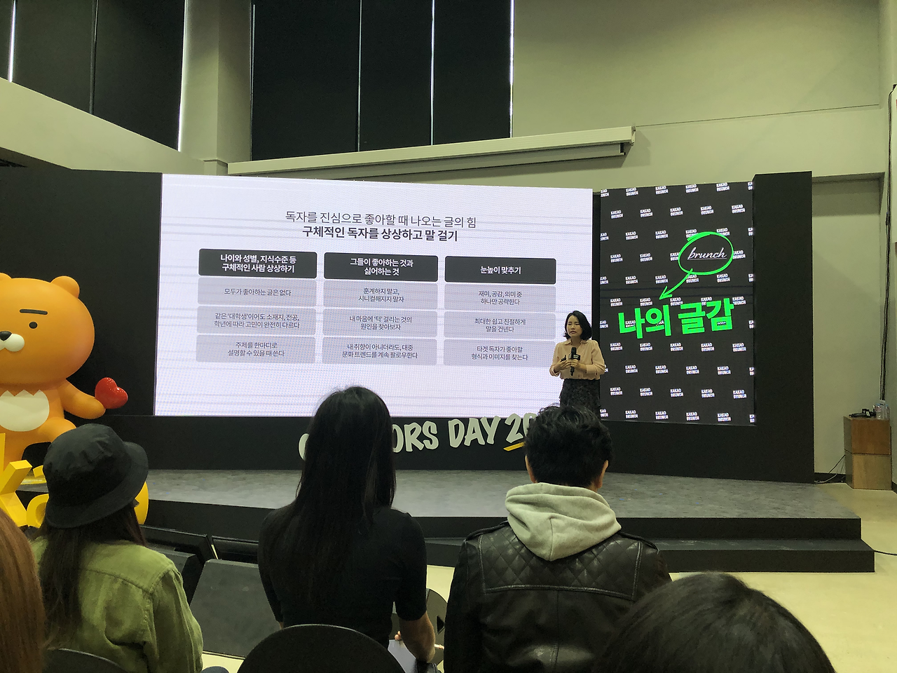 # 브런치 Talk로는 카카오브런치의 마케터, 기획자, 매거진B 에디터 세 분의 대담으로 진행되었다. 사회를 맡은 마케터분께서는 시종일관 노잼이라며 분위기를 걱정하셨지만, 개인적으로 무언가 좋아하는 일을 진실하게 고민하며 하고 있는 사람들에게서 느껴지는 건강한 에너지가 좋았다. '에디터'라는 직업에 대한 애정 어린 고찰도.