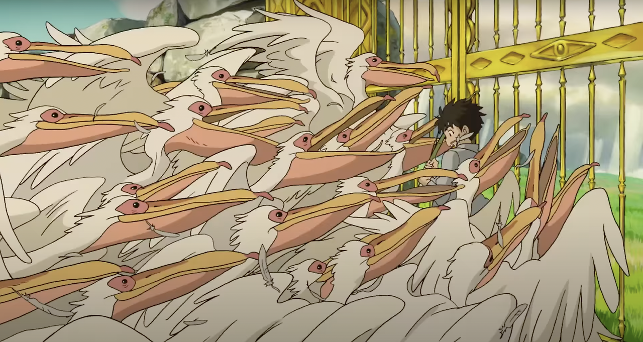 펠리컨과 앵무새들은, 하야오가 일생 동안 가꿔온 작품 세계도 오직 선(善)만으로 이루어진 아름다운 환상 세계는 아님을 보여준다. 마히토가 탑에서 만나게 되는 모든 선과 악의 무리들은, 하야오가 자신의 작품 세계 속에서 대면하고자 하는 자기모순을 그리는 듯하다.