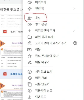 기존에 구글 드라이브의 자료를 공유하는 방법은 아래와 같다.
