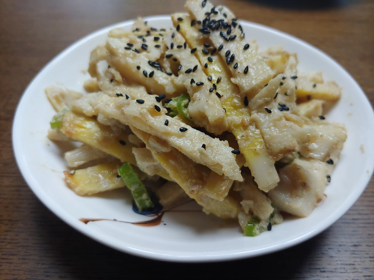 꼼꼼히 입안에서 죽순을 씹어보고 어떤 맛과 잘 어울릴까 생각해보니 라조장을 넣고 볶은 고추잡채 같은 중식 볶음에 죽순이 잘 어울릴 것 같아요. 생강, 마늘을 기름에 볶다가 양파와 피망, 돼지고기를 넣고 센 불에서 호르르 볶아 굴소스와 라조장을 넣어서 간단하게 만든 고추잡채에 하얀 꽃빵을 감싸서 먹는 거죠. 그럼 아삭하게 씹히는 피망과 죽순이 좋은 식감을 담당하고 중식 소스가 특유의 이국적인 향을 내주면서 돼지고기의 고소한 감칠맛이 잘 어울리는 일품요리가 되겠죠. 내일 저녁 반찬은 죽순 고추잡채로 결정했습니다.
