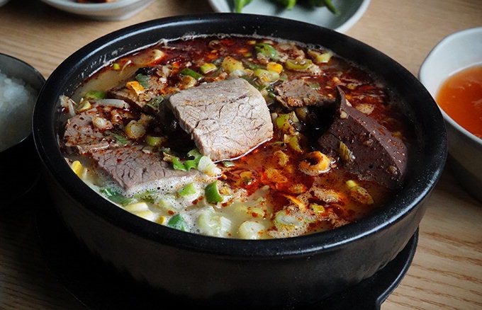 순대국밥과 따로국밥은 뭐랄까, 진정한 어른의 맛이랄까요? 그 뜨끈한 국물에 쌀밥을 말아 훌훌 먹는 국밥의 매력은 먹고사는 일의 고단함을 알아야 느낄 수 있다고 생각합니다. 직장인들의 점심메뉴로도, 반주를 곁들일 식사메뉴로도, 밤새 달리고 새벽 해장음식으로도 어울리는 게 이 순대국밥과 따로국밥입니다. 특히 선지를 넣어 주는 따로국밥의 참 맛을 깨닫게 된 것은 제가 이십 대 중반이 된 후였습니다. 입에도 안 대던 선지에서 고소하고 부드러운 맛을 느낀 후로는 종종 찾아 먹는 보양식이 되었어요. 따로국밥은 밥 따로 국 따로 준다는 의미인데 처음에는 국에 밥을 말아서 줬지만 손님들의 요청으로 따로 차리기 시작했대요. 국물 위에 다진 마늘을 올려줘서 마늘의 향이 강하게 느껴집니다.
