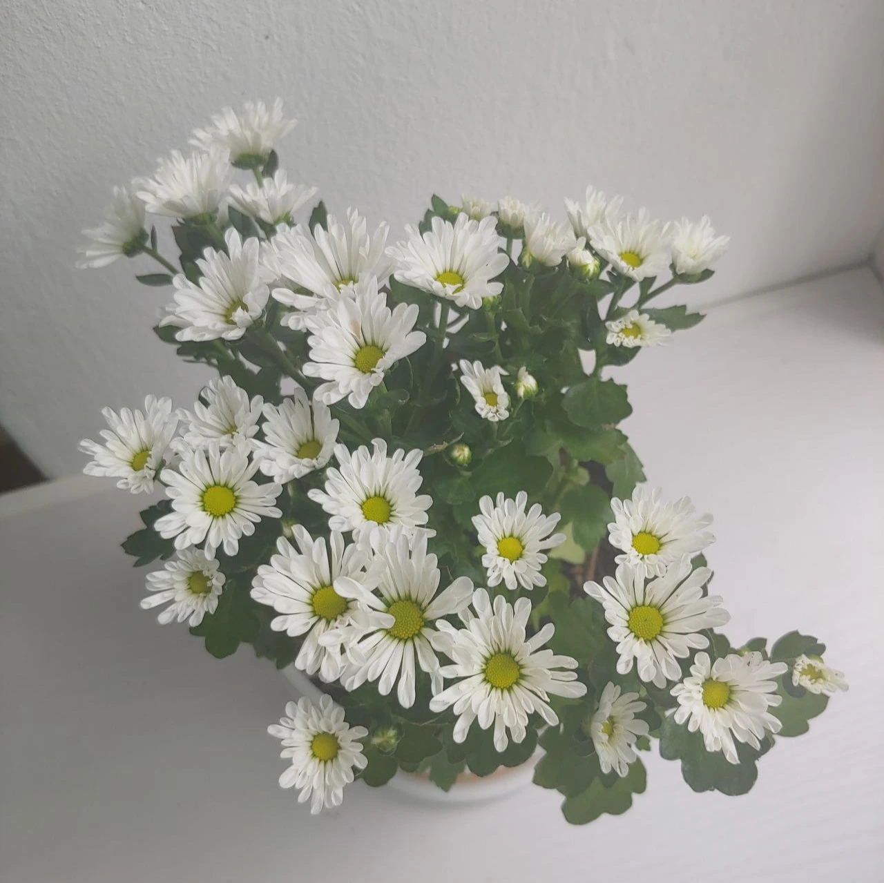 꽃집을 두 바퀴나 서성이고도 마땅히 마음에 드는 것이 없었다. 행복나무라는 것도 추천을 받았는데 영 마뜩잖다. 로즈메리를 키우던 화분에 다시 로즈메리를 키우겠다며 화분을 도로 가져왔다. 대신 국화 모종을 하나 사 왔다. 하얀 꽃, 노란 꽃, 보라색 꽃도 있었는데 하얀 꽃잎에 노란 수술이 있는 것이 싱그러워 보여서 냉큼 골라 왔다.