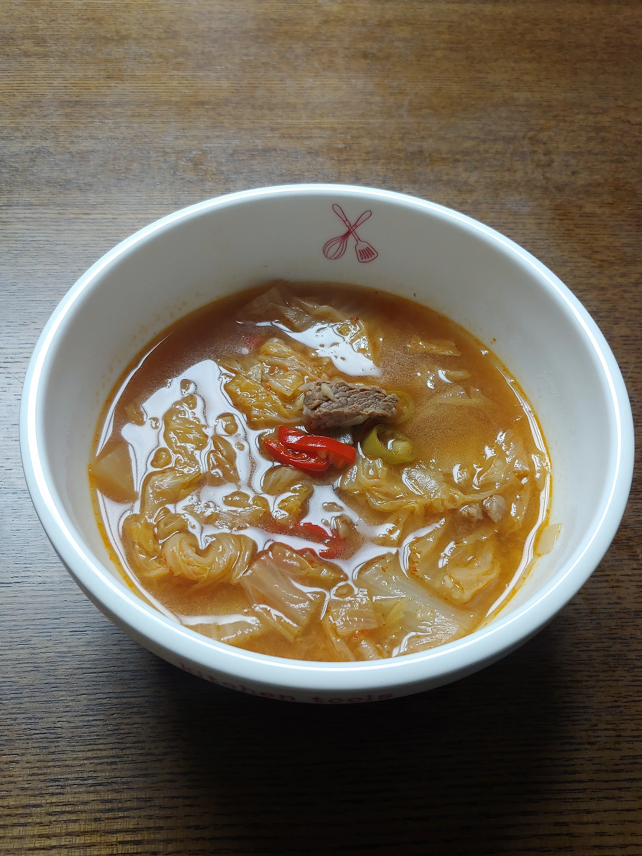 배추 된장국을 끓이면 시원하고 소화도 잘 되는데 여기에 소고기를 조금 넣어주면 깊은 감칠맛이 나요. 소고기 뭇국 뿐만 아니라 배추만 넣고 된장을 넣어서 끓인 국도 시원하니 맛이 좋죠. 겨울에 무와 배추에 단맛이 한창 오를 때 끓이면 정말 맛있습니다. 한 솥 끓여 놓고 여러번 데워 먹으면 깊은 맛이 계속 더해지죠.