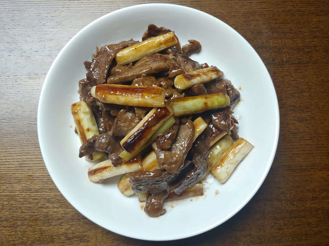 오늘 곁들이는 술은 안동소주인데요. 원래 알코올 도수가 40도가 가까운 게 안동소주라서 마시기 힘들었거든요. 근데 마트에서 21도짜리 안동소주가 있어서 사 왔어요. 대파 소고기 볶음은 간이 짭짤해서 밥과 먹어도 맛있었지만 이렇게 소주에 곁들이는 안주로도 정말 잘 어울렸어요. 불고기 향이 나는 듯 부드러운 소고기에 달콤한 대파 구이가 부드럽게 씹히거든요. 소고기는 매번 구워서 기름장이나 쌈장에 찍어먹었는데 이렇게 대파와 함께 구워서 먹는 것도 색다르고 좋아요.